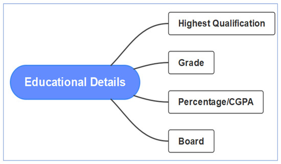 The second parameter is the “education details” of the learner, which is further divided into sub-categories such as “Highest Qualification”, “Name of School/University”, “Board”, and “Grade/Percentage”, as shown in Figure 4.