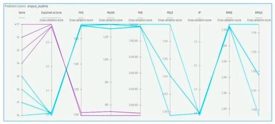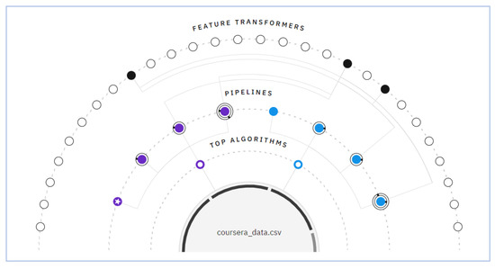 In this paper, the authors have applied regression analysis to the Coursera dropout dataset that was fetched from Kaggle.com to predict student dropouts from the Coursera platform. The regression analysis is performed using the IBM Watson studio service for predicting student dropout cases. The relationship map of coursera_data is depicted in Figure 11, which highlights the pipelines, top algorithms used, and feature transformers. The training set consists of 90% data, and for cross-validation, 3 folds were performed for computation.
