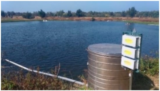 - Bador, R.; Blyth, P.; Dodd, R. Acoustic Control Improves Feeding Productivity at Shrimp Farms. Available online: https://www.globalseafood.org/advocate/acoustic-control-improves-feeding-productivity-at-shrimp-farms/ (accessed on 20 September 2020).