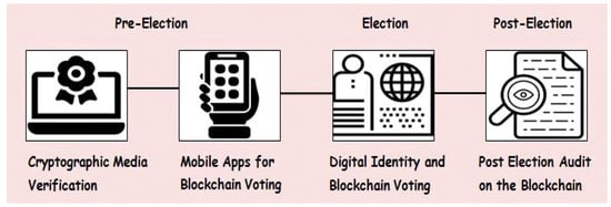 - Alam, M.; Yusuf, M.O.; Sani, N.A. Blockchain technology for electoral process in Africa: A short review. Int. J. Inf. Technol. 2020, 12, 861–867. [Google Scholar] [CrossRef]