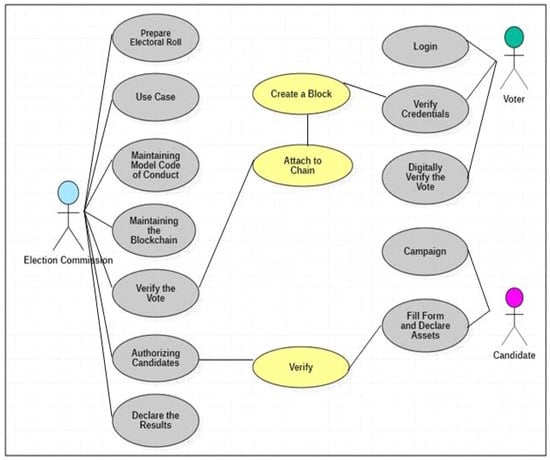 For any voting system, there can be a number of parameters that need to be considered while designing an automated, secure and trusted e-voting system [44]. Firstly, it should majorly focus on events such as register (create), poll, validity, verify and publish. This can be well-conceptualized from three-point of views, i.e., voter’s view, candidate’s view and chief election commissioner’s view as depicted in Figure 5 [45].