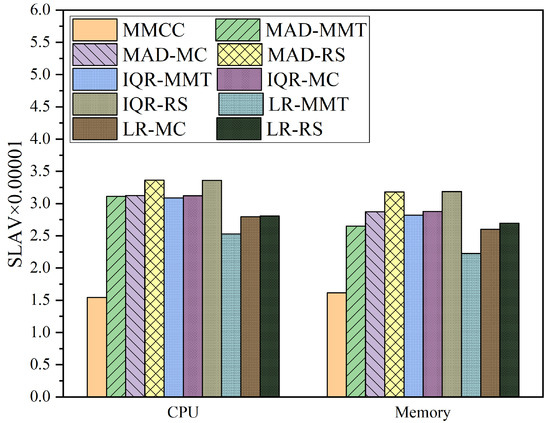 To ensure user performance and service quality, Buyya et al. [20] proposed a CPU-based SLAV calculation method, which was widely adopted in many subsequent works [21,22,23,24,25,26,27,28,29]. However, the quality of service (QoS) of users when using VMs cannot be measured only by CPU performance, and SLAV must involve the use of multiple resources.