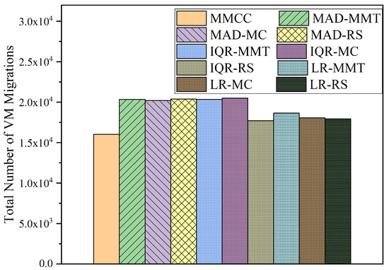 Comparing the total number of VM migrations triggered by all methods.