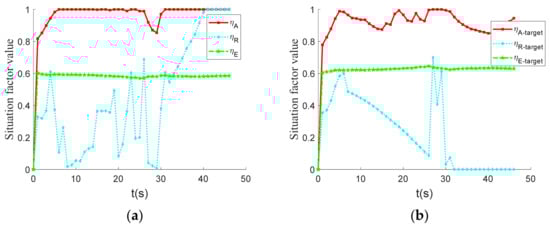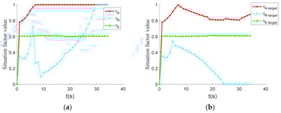 Maneuver situation factor change curve. (a) UCAV; (b) enemy.