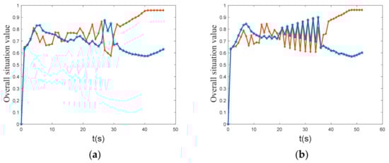 Overall situation value change curve. (a) UCAV; (b) enemy.