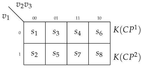 A survey of methods of structural decomposition can be found in []. One of the known methods of structural decomposition is a method of encoding of collections of outputs []. The collections ( are generated during interstate transitions. They create a set . The q-th CO is encoded by the maximum binary code . The bit width of the code is determined as