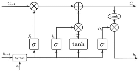 The LSTM network, a further modified version of the Recurrent Neural Network (RNN), is used to learn long-term contextual relevance and therefore has the advantage of providing better performance when the data is sequential. The correlation between frames should be considered when performing speech emotion recognition; therefore, this paper uses LSTM as a classification model. The LSTM structure is shown in Figure 5.