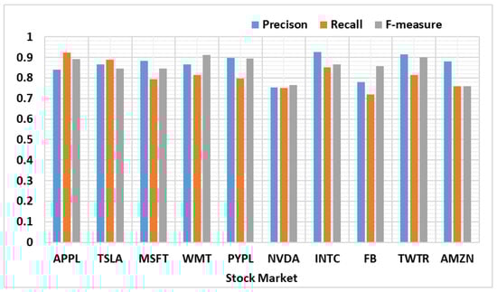 Numerous studies [,,,,,,,,,,] have been exhibited on employing electronic knowledge to forecast stock trends. For instance, Zhang et al. [] proposed an LSTM based method to estimate the stock market trend. In the first step, the input is partitioned into three parts: open opinion space, stock transaction, and market transaction data. The one-layer LSTM was employed to prepare long memory in public opinion space, whereas two layers of LSTM were applied to train short memory in stock series and market. After this, data were combined by using the merged layer, and a linear layer was utilized to enhance the model results. The method predicts the market behavior and evaluates the relationship between the emotions of investors and transaction data. However, the method needs further improvements in the emotion abstraction technique. Xu et al. [] presented a method for the forecast of the stock market by introducing the SA. Initially, the dataset is gathered by using a heuristic mean-end process, and then sentiments are identified from the acquired data. SA was combined with event study and the result was used as the input of principal component analysis (PCA), which was used for further analysis. The method predicts the market behavior using SA with an accuracy of 84.89%. However, the method faces stability-related issues and there exists an inequality between the forecast and real values.