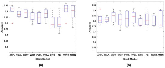 The reported values demonstrate that the introduced approach outperforms the comparative techniques [,,,,,,,], by introducing the SSWN sentiment lexicon which assists in selecting a more representative set of features related to the stock market. Moreover, the methods in [,,,,,,,] are computationally more expensive and can result in over-fitting problem. However, in our case, the robustness of the ELM classifier to deal with the over-fitted training data helps to attain efficient accuracy with less processing time. So, the proposed method can be described as more effective and efficient for stock market prediction.