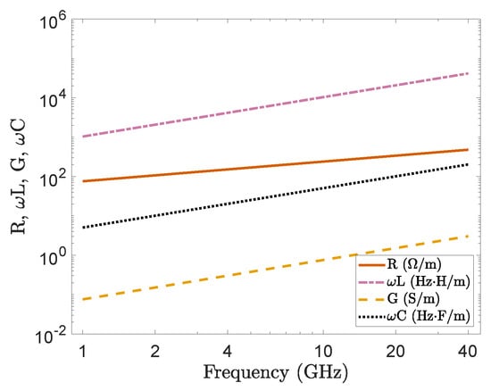 where and are the vacuum permittivity and permeability, having the values of and , respectively. As can be seen in Figure 2, within the frequency range from 1 GHz to 40 GHz, it always satisfies and ; hence, the characteristic impedance of a typical lossless coaxial line with a low-loss dielectric can be calculated with []