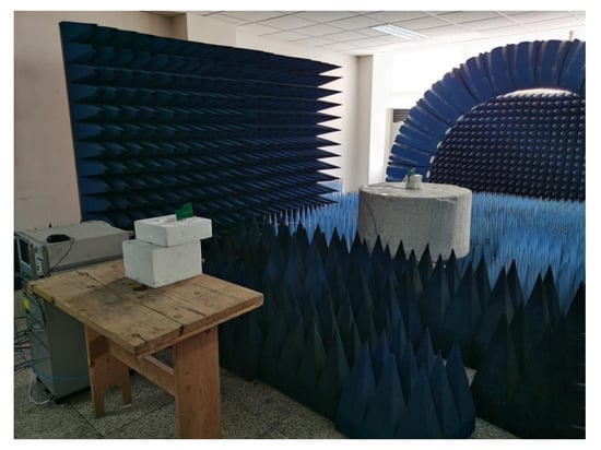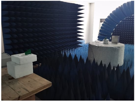 Figure 6 shows the measurement setup used to verify the above methods. In the test field, the walls and ground are partially wrapped by absorbing material and the ceiling and equipment cables are exposed, which are the main sources of multi-path interference. This measurement environment, similar to a non-absorbent environment, has strong reflection interference from itself and artificially placed interference objects.