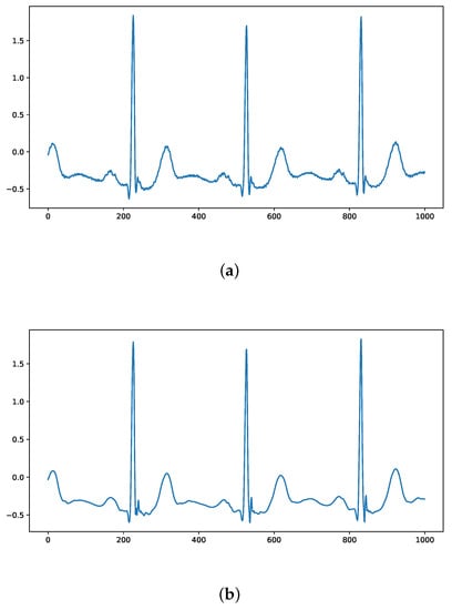 - ECGs have a predominantly normal heart rate and a low abnormal heart rate, so the sample size between each category of the ECG dataset is often highly imbalanced. The imbalance in the number of samples of ECG signals from different categories affects the performance of the classifier. Models trained on imbalanced datasets usually do not perform well, especially in the determination of abnormal categories [7,8].