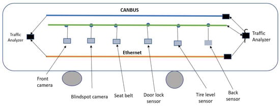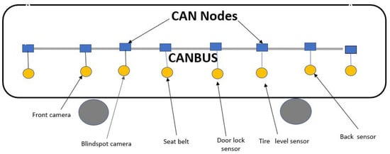 In this section, we explain the proposed system architecture, which takes advantage of the virtualization policy to isolate the processes. Existing papers on Ethernet usage in smart cars do not consider the possibility of smart nodes in a virtualized environment. The diagram in Figure 1 shows a typical traditional CANBUS layout.