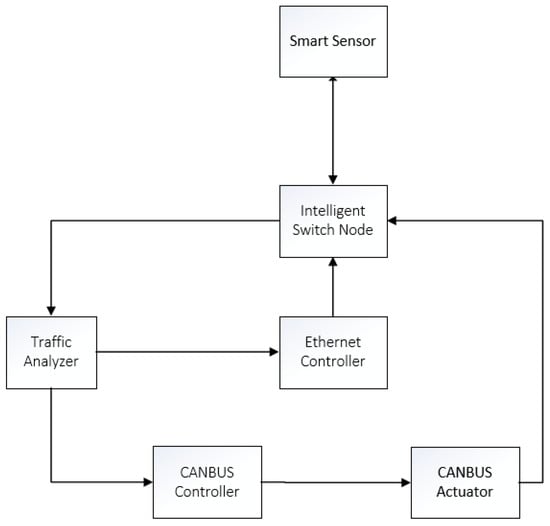 The smart nodes and the traffic analyzers in the proposed solution were installed towards the receiving node operating system, which represents an interface card that is backward compatible with the CANBUS data path. The smart nodes use the Ethernet technology as the primary means of communication for high-bandwidth demand traffic or application due to its capacity.