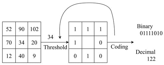 Figure 1 shows the process and encoding of the LBP operator for grayscale images with 3 × 3 pixels.