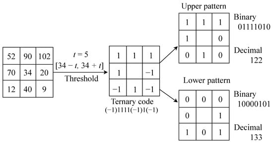 where, t is the user-defined threshold. Figure 2 shows the working and encoding of the LTP operator for grayscale images with 3 × 3 pixels, with the parameter value .