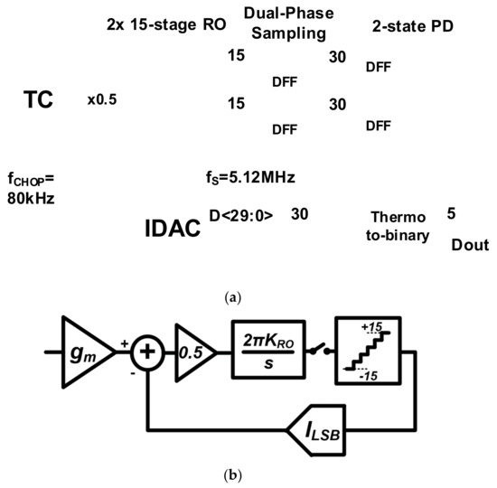 - Zhao, W.; Li, S.; Xu, B.; Yang, X.; Tang, X.; Shen, L.; Lu, N.; Pan, D.Z.; Sun, N. A 0.025-mm2 0.8-V 78.5-dB SNDR VCO-Based Sensor Readout Circuit in a Hybrid PLL-ΔΣ M Structure. IEEE J. Solid State Circuits 2020, 55, 666–679. [Google Scholar] [CrossRef]