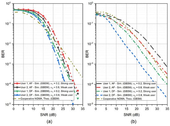 - Umakoglu, I.; Namdar, M.; Basgumus, A.; Kara, F.; Kaya, H.; Yanikomeroglu, H. BER Performance Comparison of AF and DF Assisted Relay Selection Schemes in Cooperative NOMA Systems. In Proceedings of the 2021 IEEE International Black Sea Conference on Communications and Networking (BlackSeaCom), Bucharest, Romania, 24–28 May 2021; pp. 1–6. [Google Scholar]