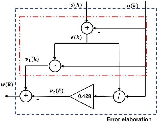 There is a term that is not canceled by the subtraction of that makes the system set to a wrong value of . The same problem could arise if the gain control is not accurate enough, leading once again to a residual component proportional to , which is not filtered, and which does not let the system settle to the desired value. To overcome these problems, we introduce the error elaboration block shown in Figure 6, different to the one in [8] allows us to remove not only the residual ISI component but also the gain error. For the simplicity of calculation, we assume is the only distortion component different from zero, is then: