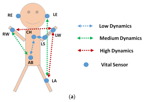 - Moin, A.; Thielens, A.; Araujo, A.; Sangiovanni-Vincentelli, A.; Rabaey, J.M. Adaptive Body Area Networks Using Kinematics and Biosignals. IEEE J. Biomed. Health Inform. 2021, 25, 623–633. [Google Scholar] [CrossRef]