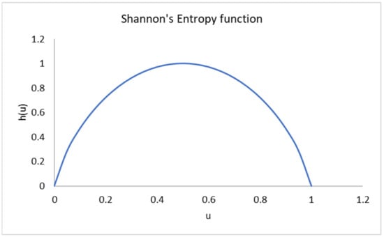 Shannon’s function is shown in Figure 3. It has the minimum value 0 when u = 0 or u = 1 and the maximum value 1 when u = ½.