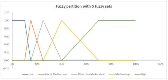 Since the fuzziness of the fuzzy set Medium is higher than the threshold, TFEP splits this fuzzy set into two fuzzy sets, called, respectively, Almost Medium and More than medium. In Figure 14 is shown the new fuzzy partition having five fuzzy sets.