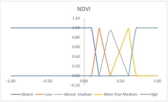 The thematic map of the NDVI index using fuzzy partition in Figure 14.