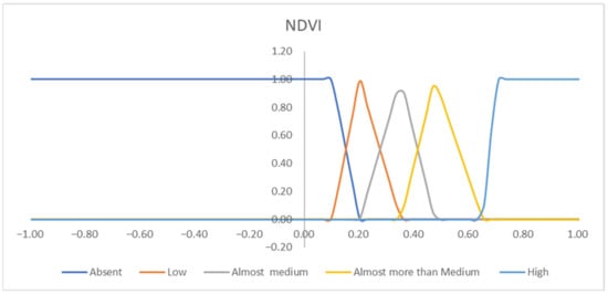 The second fuzzy partition of NDVI given by 5 fuzzy numbers.