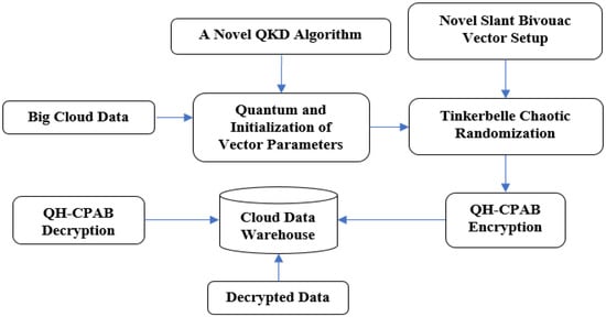 Security over the cloud [] has turned into a complex and one of the important research fields with large volumes of sensitive consumer data and authenticated access structure design. To achieve more secure and reliable cloud services, we need to incorporate complex encipherment strategies; for this purpose, we used an enhanced Attribute Based Encipherment (ABE) [] process along with a quantum key distribution model (QKD). The QKD is applied for the proposed CP-ABE model to provide additional security for the user’s sensitive data over public networks. The QKD-based crypto-graphical approach is entirely based upon quantum physical and mechanical properties. The primary goal of QKD is to generate a secret key used for cloud consumers’ info encryption without the help of a third-party service provider. Conventional ABE schemes are not reliable, not secure, and vulnerable to M-I-M Attacks (Man in the Middle Attacks) [] over the transmittable sensitive info over the cloud and internet. When the size of the consumers’ data grows, conventional ABE schemes go bad w.r.t various parameters, such as encipherment time, key generation time, and revocation facility, etc. To address the abovementioned key issues, we use up the message digest, integrity, and QKD approach, which proposes a new CP-ABE scheme presented over the cloud platform. Along with these, we take some vital parameters of chaotic methods comprising pseudo-random number production property and sensitivity property to the actual primary requirements. Using all these properties, we can produce more complex confusion and diffusion characteristics, which are crucial for the encipherment process. For consumer information confidentiality and validation task, hash-based chaotic methods are employed to enhance the consumer’s info security and arbitration. Chaotic mappings are methods that are extremely sensitive to their initial requirements, which can develop highly variant outcomes. A small change in starting inputs towards chaotic methods can generate distinct outcomes.