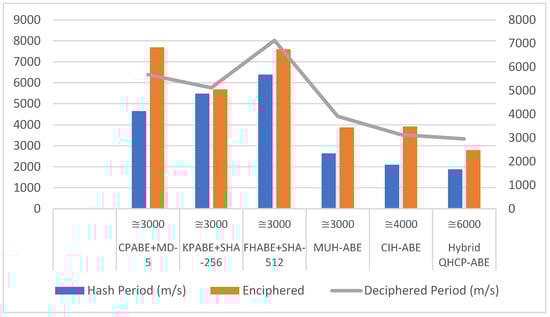 Figure 8 exemplifies the comparative analysis of the Hybrid QCPABE over the conventional models with dissimilar processing time (m/s). As displayed in Figure 5, it is observed that the presented standard took less processing time as linked to the conventional standards w.r.t diversified structured and unstructured data formats.