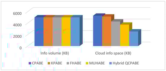 As per Table 2 results, it is evidently clear that planned Hybrid QCP-BE standard took a smaller amount of cloud info space even though the consumers’ info volume is equivalent to the conventional standards of the size of 5000 KB. Therefore, we can conclude that even the size of the input info rises, our standard model devours a very small volume of cloud space as compared with conventional standards.