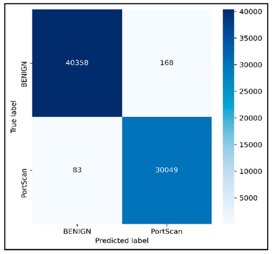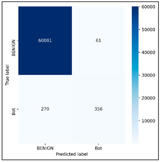 The experiments were performed with the Python language in the Google Colab Cloud Environment. The outcome of the tests is the confusion matrix of datasets. Figure 7, Figure 8, Figure 9, Figure 10, Figure 11, Figure 12 and Figure 13 present the confusion matrix of each sub-datasets of the CICIDS 2017 dataset. Table 4, Table 5, Table 6, Table 7, Table 8, Table 9 and Table 10 shows various parameters derived from the confusion matrix, as discussed in the section. The CICIDS 2017 dataset was split into 67% for training and 33% for testing.