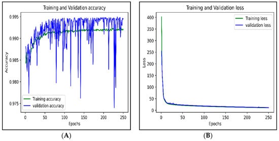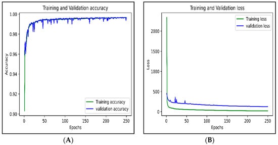 In this study, as shown in Figure 15, Figure 16, Figure 17, Figure 18, Figure 19, Figure 20 and Figure 21, we have used a different number of epochs to gain maximum accuracy and minimum loss for each sub-dataset. The loss represents the incorrect prediction of the labels by the model. We applied the Sparse Categorical Cross-Entropy method to calculate the loss in our proposed model. We observed that the loss curve, as well as the accuracy curve, started flatten after the 100th epoch for most of the sub-datasets. After the 100th epoch, there was very little decrement and increment in loss and accuracy values, respectively.
