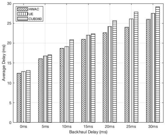 In the association method of CUB360, although user behavior is taken into account, the impact of multi-rate and load balancing on AP association is not taken into account. The average download delays of users grow linearly with the backhaul delay. The advantage is not obvious for the backhaul link congestion and AP dense network scenario.