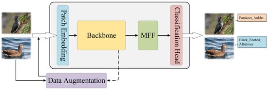 The patch embedding module blocks and transforms the image, and embeds the class token and position. The backbone network is consistent with ViT, and includes 12 layers of Transformer blocks for basic feature extraction. A lightweight feature fusion module, MFF, further improves the expressiveness of features. Through parallel classification heads, the final classification is obtained from the weighted average method of three classifications.