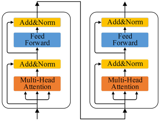 where Q, K, and V refer to the query, key, and value, respectively; refers to the key vector dimension; refers to parameters when performing linear transformations on Q, K, and V; and h is the number of heads. The Concat operation concatenates the outputs of multiple heads.