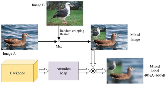 For the model to grasp more detailed information that is helpful for classification, instead of only the most discriminative information, CutMix data augmentation covers the image with part of another image, so that the model can discover more useful information [17,18]. However, this brings new problems. Random cropping and pasting of background image patches that do not contribute to classification will lead to a loss of object information and incorrect label assignment [18,19,20,21,22].