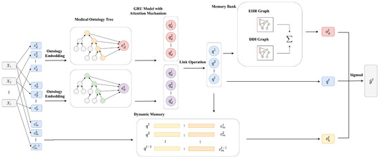 The Med-tree model is divided into three parts: Ontology Embedding, Temporal Dependency and Knowledge Memory. In the following content, the specific structure shown in Figure 4 and the training process of the proposed model is explained in detail.