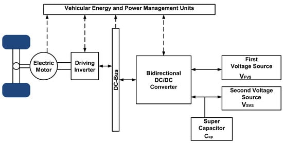 - Lai, C.M.; Cheng, Y.H.; Hsieh, M.H.; Lin, Y.C. Development of a Bidirectional DC/DC Converter With Dual-Battery Energy Storage for Hybrid Electric Vehicle System. IEEE Trans. Veh. Technol. 2018, 67, 1036–1052. [Google Scholar] [CrossRef]