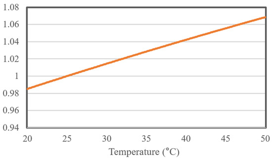 Here, I is the current, H is the hardness of the material, A is the area of the electrode, l is the length of the electrode arm, and r is the distance between the electrodes. As seen from the formula, Lorentz force has no temperature variable and is not affected by temperature. In the formula of the Holm force, the hardness H of the material is affected by the temperature. The hardness H of the material in this formula is the Brinell hardness (BH). Figure 9 shows the temperature-dependent ratio of BH based on a value of 25 °C [19].
