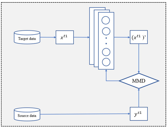 where maps each instance to the kernel related Hilbert space , and and are the sample sizes of the source and target domains. By minimizing the MMD distance as the goal of the neural network training, convergence is reached after multiple rounds of network training to obtain the data mapper.