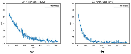 (a) The loss curve of the direct training model. (b) DA-Transfer model loss curve.