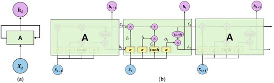 Structure of simple RNN and LSTM models: (a) RNN architecture; (b) LSTM architecture.