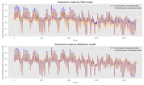 Comparison of performance between existing RNN model (top) and optimized RNN model (bottom).