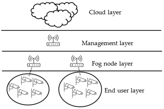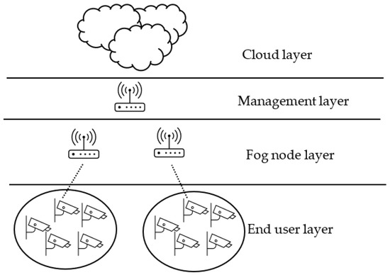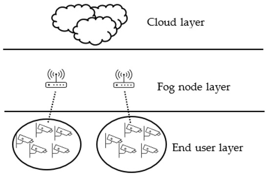 - Fog nodes layer: devices in this layer can be router, switches, or access points. This layer is the first hub for end users’ requests, and it connects end user devices to upper layers if necessary, which is explained in the next section. In this layer, each fog node has a parent in the management layer.