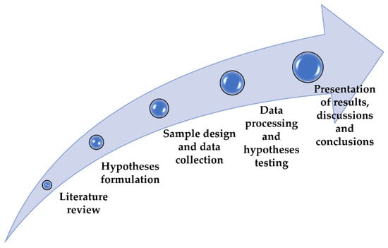 The effects of management and accounting information systems transformation are assessed through a survey conducted among professionals in PM, Mk, and DMP. The stages of researching users’ perceptions regarding the impact of digitalization in PM, Mk, and DMP are presented in Figure 1.
