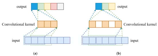 Comparison of ordinary convolution kernel and dilated convolution kernel. (a) Conventional 1 × 3 convolution kerel; (b) Dilated convolution 1 × 3, dilation rate is 2.