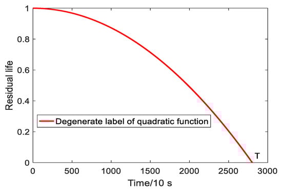 To address the above issues, the article uses the quadratic function indicator as the degradation label of the bearing, as shown in Figure 9. As can be observed from Figure 9, the label is more in line with the degradation trend of the bearing. In the early stage of bearing degradation, the degradation effect is not obvious, with a relatively gentle degradation trend, and in the late stage of bearing degradation, the bearing shows a rapid degradation trend. The label takes into account the entire degradation trend of the bearing and does not require the identification of the start of the degradation phase. The formula for the quadratic degradation label is as follows.