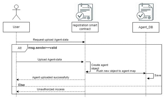 - Agent enrollment: The registration step consists of adding the agents to the system. After verifying the account address, the agent information can be added to the Agent_DB through a smart contract. In this phase, the smart contract saves the characteristics or attributes of each agent, especially the identifier and account. Upon successful registration, agents are allowed to join the blockchain.