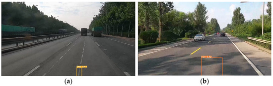 False detection results of pavement cracks: (a) longitudinal crack was mistakenly detected as pothole; (b) longitudinal crack was mistakenly detected as alligator crack.